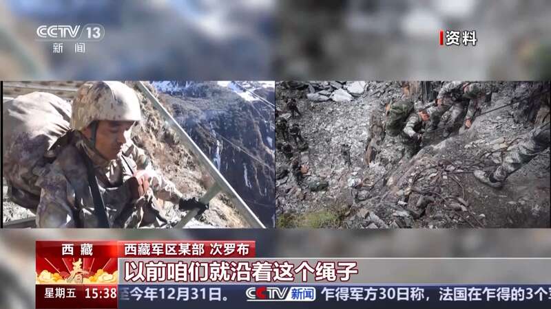 西藏军区某部 次罗布:这个山口叫老虎嘴,以前没有钢架桥。之前是边上一直有绳子挂下来的,以前就沿着绳索然后往上面攀登。