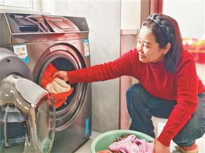 赵海的妻子安娟娟在使用智能洗衣机。
