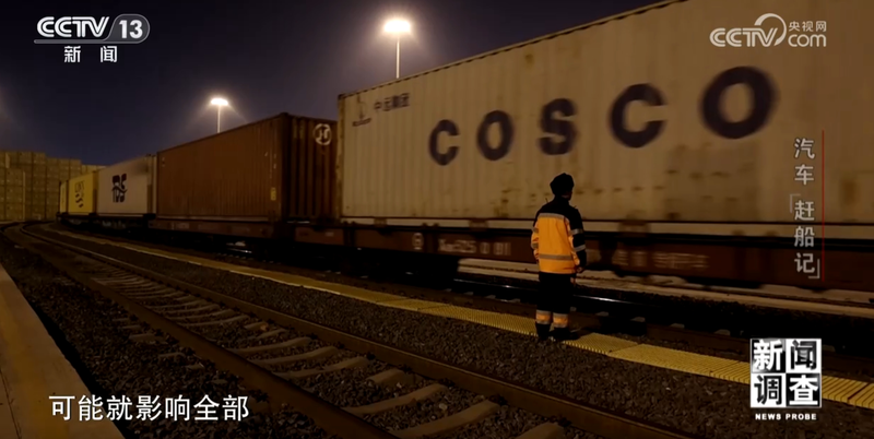 青岛中远海运集装箱运输有限公司项目开发部经理 王占芳:这样的情况比较少一些,每一个环节都要去卡紧的,无缝衔接。咱前端的铁路方,到达的时间压缩出来,是为了把车辆更早一点送到装箱现场。装箱线的工人也会加大班组进行提升装箱效率,完成装箱环节的效率。装箱封箱完以后进行集港,每一个环节大家都去提升效率和加大人员资源的投入,进行缩减时间,然后保障客户货物的正常发运,顺利发运。