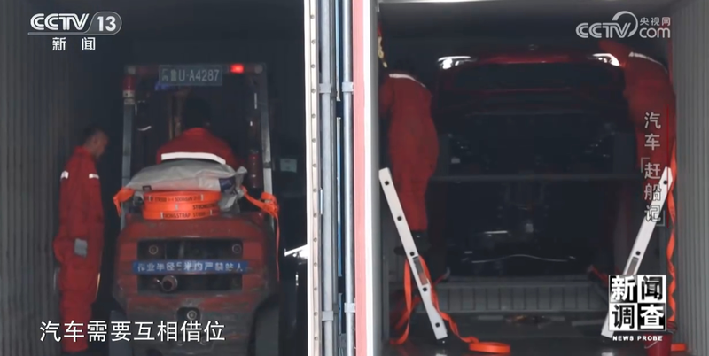 这批新能源汽车的目的地是英国,船期为45到60天,要确保汽车安全地在海上漂泊几十天,装箱工作至关重要。