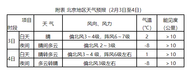 △ 北京地区天气预报(2月3日至4日)