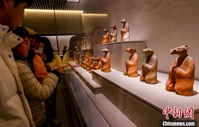 展出的十二生肖蛇俑也颇具人气,不少游客带着孩子在展台前驻足端详。“生肖首人身的造型栩栩如生,同时也十分有趣,让人想进步一步了解背后的故事。”在湖北探亲的游客杨慧,带着孩子走进博物馆,参与寻“蛇”互动。