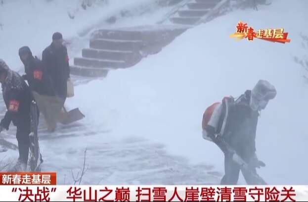 “决战”华山之巅!这群扫雪人崖壁清雪守险关