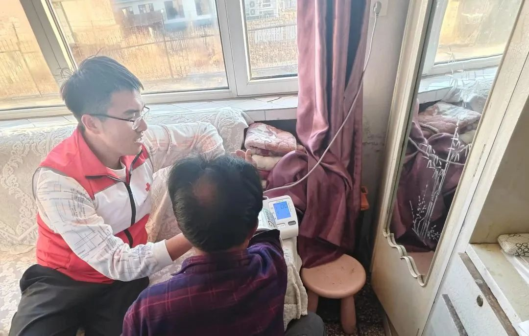 张皓源作为珲春市红十字会志愿者到村民家中开展义诊
