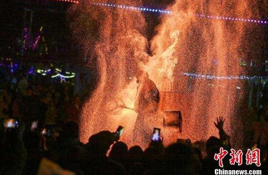 四川眉山:民众观赏“铁花雨”欢欢喜喜过大年