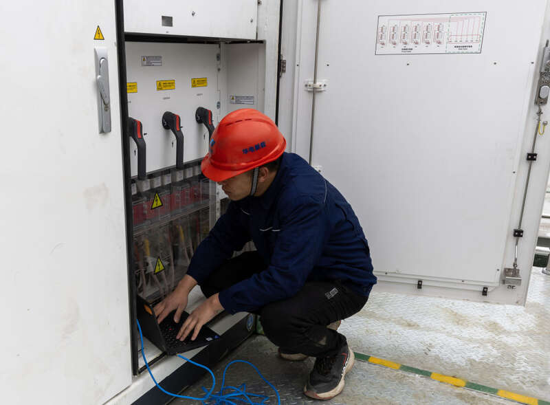 18时许,杨升平和同事们结束当天的检查工作,回到山下的升压站。杨升平向公司汇报一天的工作内容,接着安排人员对储能电池放电。