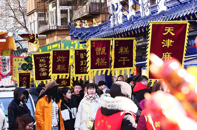 2025年2月4日,天津,烟火气十足的西北角美食街区。