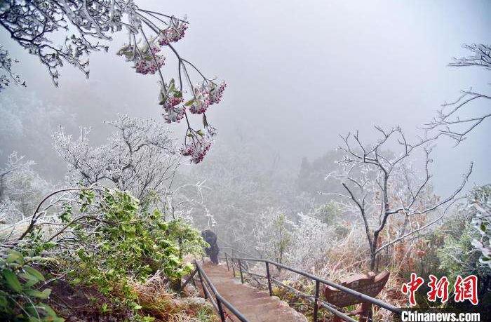 粤北大山现冰雪雾凇美景 吸引珠三角游客