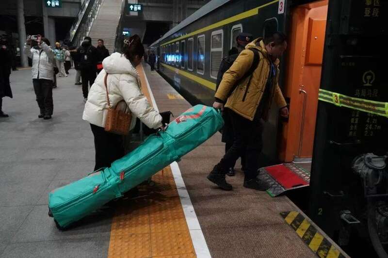 “坐火车去阿勒泰滑雪太方便了!列车上不仅有专门放雪板的车厢,还配备了固定绑带。我们在车上还遇到了志同道合的‘雪友’,大家聊得很开心!”