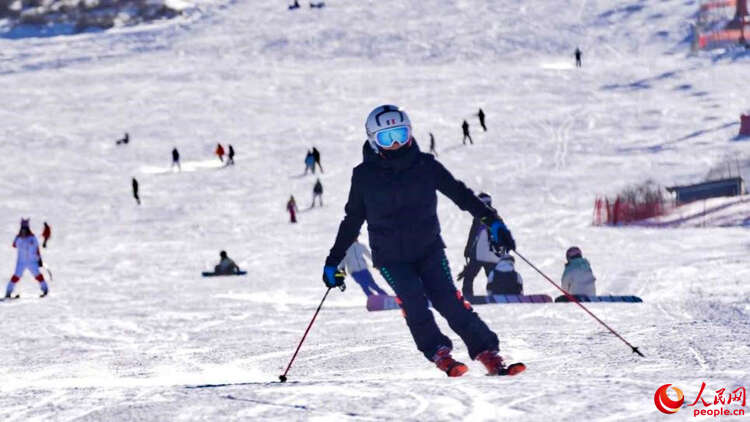 在新疆丝绸之路山地度假区滑雪场,滑雪爱好者驰骋在雪道。人民网 李欣洋摄