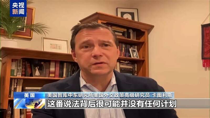 美国智库中东研究所美国外交政策高级研究员 卡图利斯:我认为他只是在信口开河,这番说法背后很可能并没有任何计划,即使有也是与当今中东现状脱节的计划,当然也没有与巴勒斯坦人或埃及和约旦等邻国进行任何磋商。这番言论基本上只是为了引起话题,引发人们激烈讨论,但问题是,这并不能真正解决问题。
