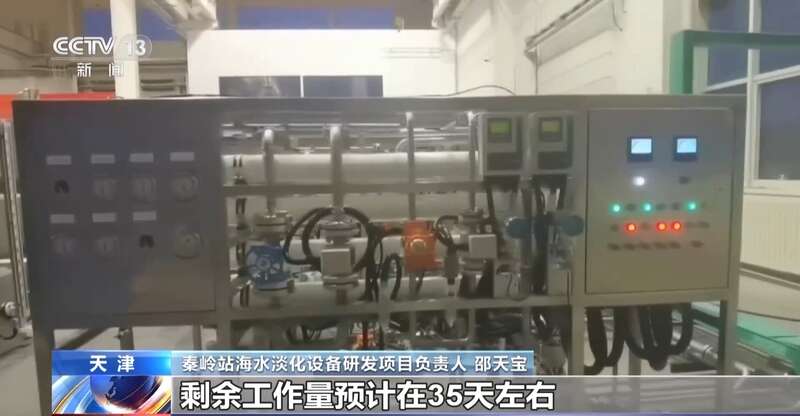 秦岭站海水淡化设备研发项目负责人 邵天宝:包括各个模块的安装,预处理模块、海水脱盐模块、产水模块以及电气自控模块这些相关的工作,剩余工作量预计在35天左右,我们将完成整套系统的安装及调试工作。