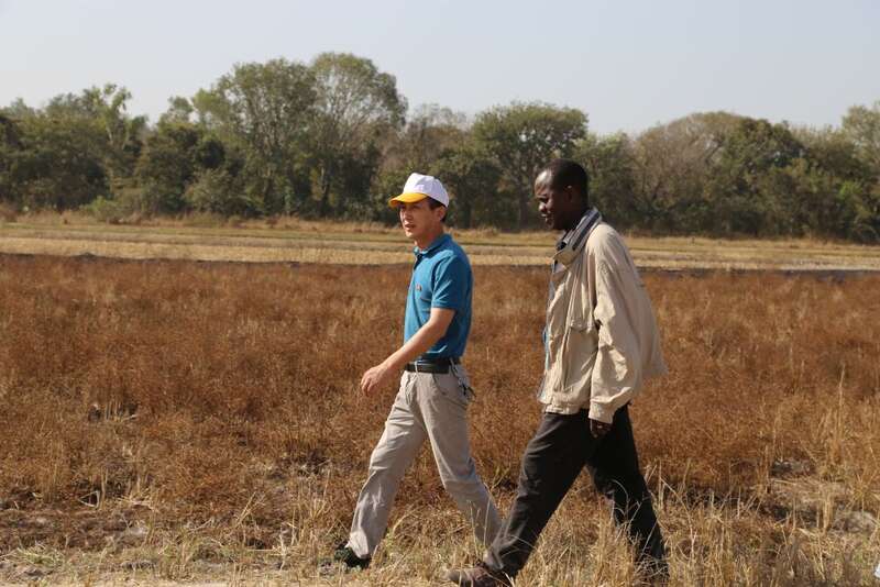 正月初一一早,吃完热腾腾的汤面,专家们便驱车前往加布区的卡兰塔巴农场,查看水稻播种前的土地平整进度。通往农场的唯一通道是一条坑洼不平的土路,雨季泥泞,旱季尘土飞扬,他们对此早已习以为常。