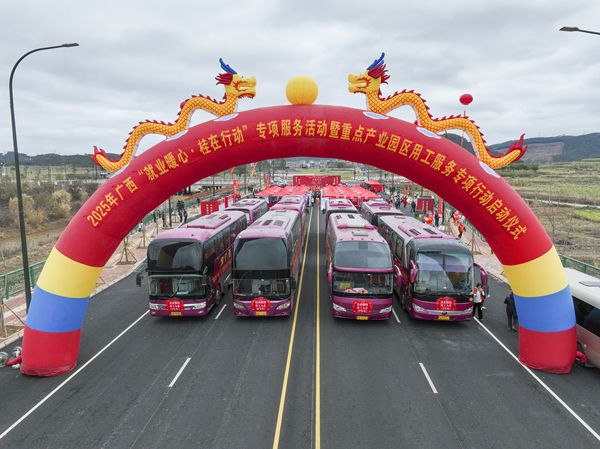 2025年2月7日,南宁,2025年广西“就业暖心·桂在行动”专项服务活动暨重点产业园区用工服务专项行动南宁市片区活动在伶俐工业园区举行。