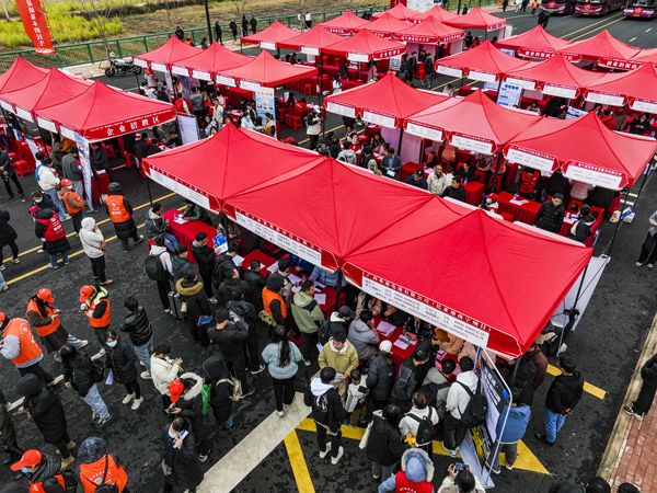2025年2月5日,郑州,由郑州市人社局和荥阳市人民政府主办的郑州市2025年“春风行动”启动仪式暨专场招聘会举行,吸引不少求职者参加。
