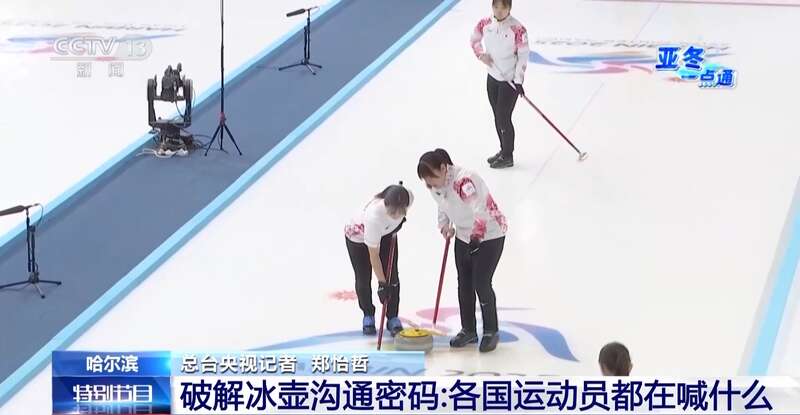 比如在英语当中“hurry”是指快速的意思,简化之后大家就读作“哈”,然后“喔”就是停止的意思,所以现场会听到很多国家的运动员,包括中国也是使用“哈”和“喔”这一套沟通体系作为最基础的擦冰和停止的指令。