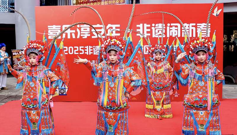 本次活动在淳安民间舞蹈《齐坑绿狮》的热烈鼓点中拉开序幕,舞狮腾飞翻越,点燃全场热情。歌舞《一路都是歌》快闪开场,青年歌手与舞者以青春朝气展现新时代杭州的新风貌。非遗创意秀《淳安风华录》则以国风音乐为背景,结合竹编、鱼灯等淳安非遗技艺现场展示,配合诗画影像,勾勒出“水墨千岛”的独特韵味。随后,睦剧经典选段《牧牛》登台,文化特派员章红婷以诙谐生动的表演,将农家生活搬上舞台,乡音乡情引发观众共鸣。