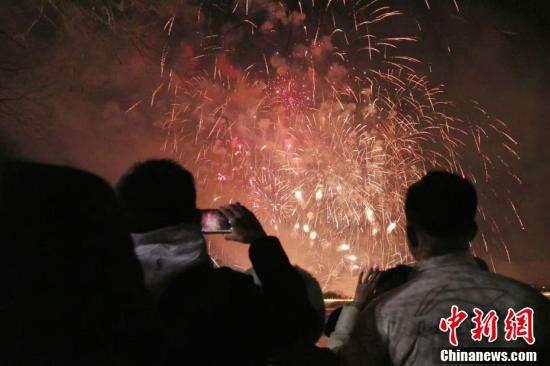 烟花在夜空绚烂绽放,人们纷纷举起手机,定格这璀璨瞬间。