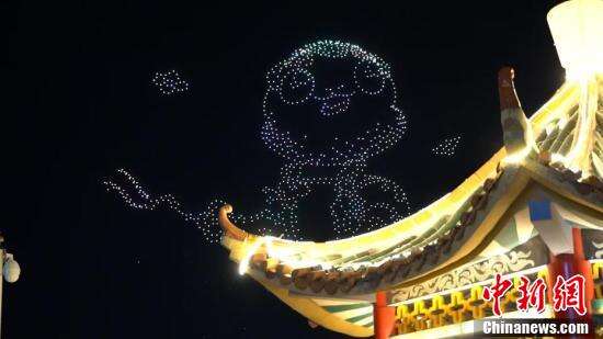 无人机在天空中变幻出栩栩如生的双峰驼造型。