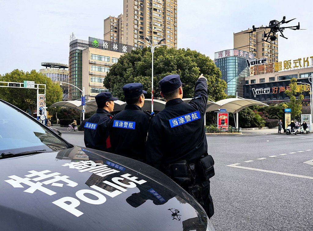 2025年2月17日,安徽马鞍山,当涂县公安局特(巡)警大队警航中队组织开展无人机空中巡查。