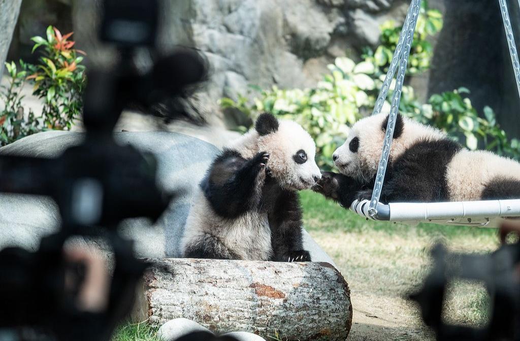 “港产”大熊猫龙凤胎宝宝亮相