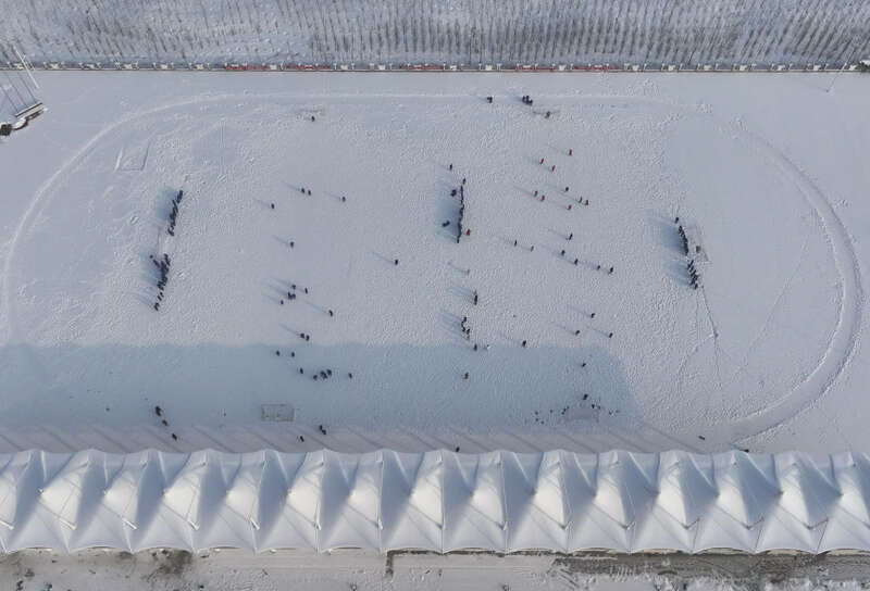 新华社乌鲁木齐2月19日电 寒假还没过完,乌鲁木齐第121小学足球队的孩子们就拿着大扫帚去球场扫雪,白雪辉映国旗,足球伴随笑声,欢腾得连冷冽的空气似乎都升温了几度。