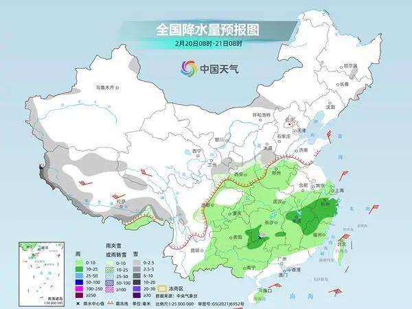 内蒙古中部、新疆南疆盆地西部山区、西藏北部、甘肃东部和南部、宁夏南部、陕西中部、华北南部、川西高原南部等地部分地区有小雪或雨夹雪,西藏东部和南部部分地区有中到大雪;陕西南部、黄淮西部、江淮西部、江汉、江南、西南地区东部、云南东南部、华南大部等地部分地区有小到中雨,其中,湖南南部局部地区有大雨。
