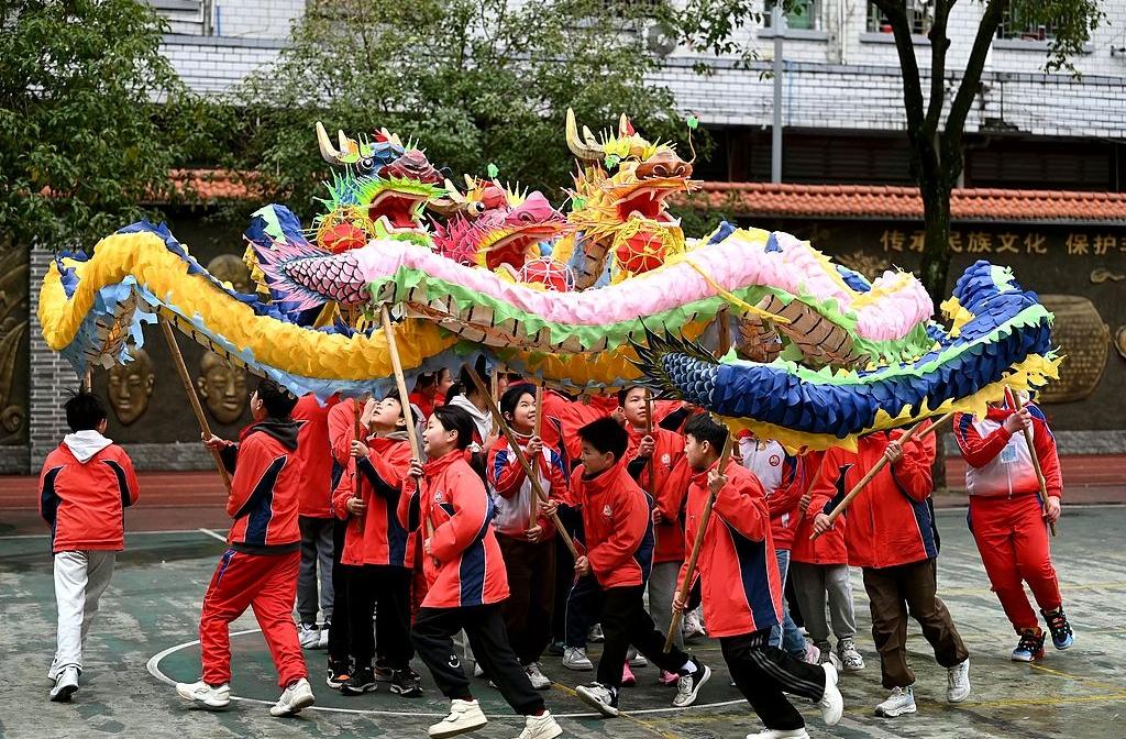 贵州锦屏:非遗舞龙进校园 小学生用传统文化开启新学期