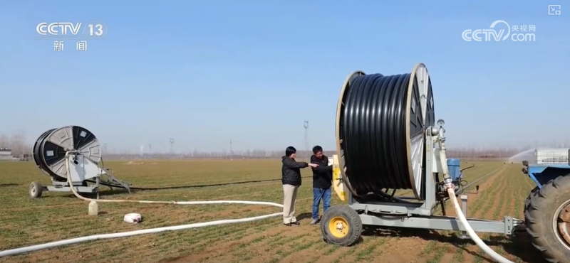 石墙镇面坊村种植户王昌松2025年种植了700亩小麦。他介绍,过去传统的大水漫灌每亩地要用水80立方米。现在用上了这种新型喷灌设备,每亩地用水减少到50多立方米,不仅节水,还降低了人工操作成本