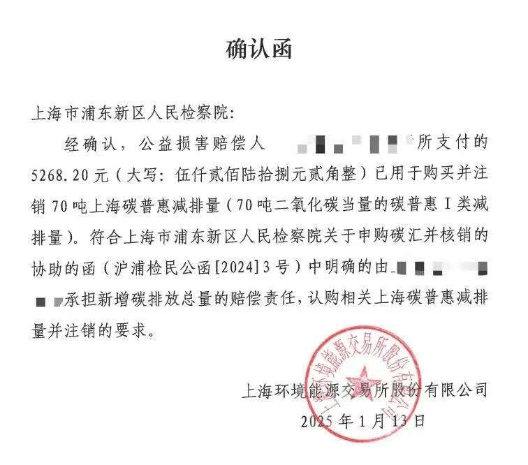承办检察官介绍,认购碳汇是一种通过购买碳排放权或碳普惠减排量来抵消自身碳排放的环保行为。将“认购碳汇”应用在公益诉讼领域,既是法律监督的创新,也是生态修复的重要手段。本次也是浦东新区检察院首次将“认购碳汇”适用于安全生产领域的民事公益诉讼赔偿。
