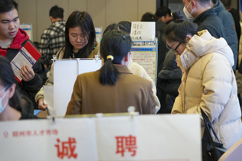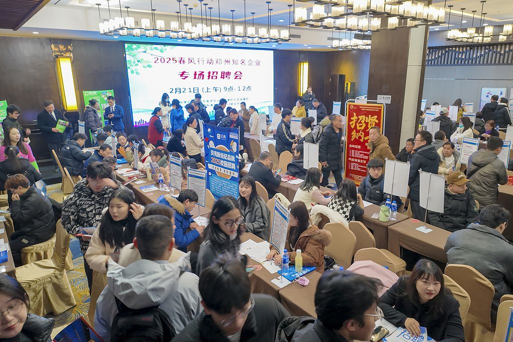2025年2月21日,“2025春风行动郑州知名企业专场招聘会”在河南郑州举行。本次招聘会吸引了100余家用人单位参会,共提供9700余个岗位,旨在助力应往届毕业生、农村转移劳动力等重点人群实现就业。 中新社记者 李超庆 摄