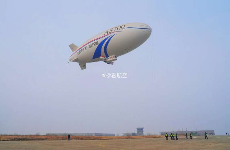 国产载人飞艇AS700D成功完成科研首飞
