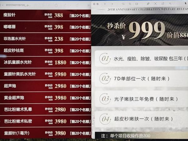 某医美机构销售的低价引流项目。刘胤衡/摄