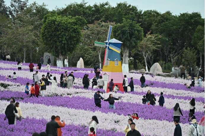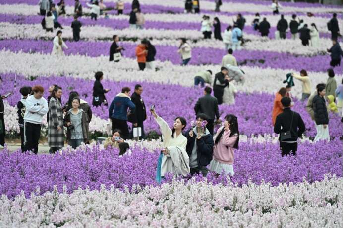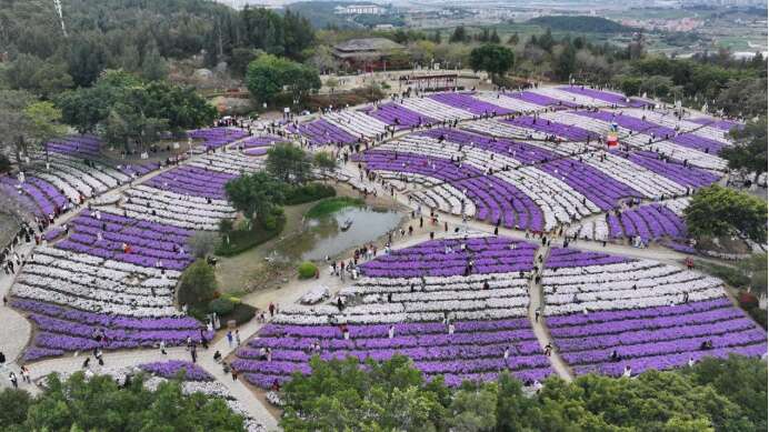 On February 23, 2025, Xiang'an Xiangshan Scenic Area in Xiamen, Fujian Province, attracted countless tourists to come and take photos of the beautiful Provencal-style violet flowers, which are also a sea of people. It is the weekend, and the peak of spring outing and flower appreciation is coming.(photoed by:VCG)