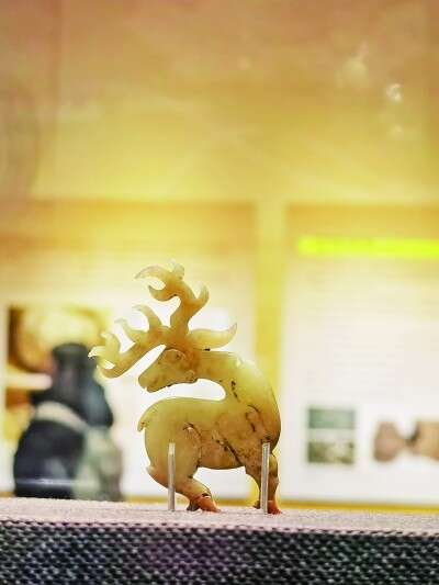 玉器在埋藏过程中,常因环境侵蚀而风化、断裂。如何再聚玉魂,重现千年前的光辉温润?展览通过修复案例,展示了修复师如何利用现代技术恢复玉器的原貌,细致重建其表面纹饰与光泽,让千年前的玉器逐渐苏醒,重新焕发出昔日的光彩。安阳殷墟妇好墓出土的玉跪人,双手扶膝跪坐。工匠将其眉毛、鼻子、嘴唇、耳朵雕刻得惟妙惟肖,连发丝和发髻等细节都展现出来了,而其身上雕刻的花纹,更是为之增添了一丝神秘色彩。通过玉人的形象,人们仿佛能穿越时光,窥见商人的样貌。还有玉鹰、玉鹦鹉、玉鹿、玉璜、玉璧……若非讲解,很难想象这种精美的玉器是经过文物保护工作者的巧手修复才得以华光重现的。