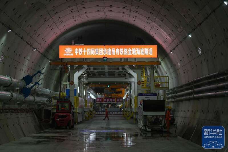 甬舟铁路金塘海底隧道西起浙江宁波市北仑区,东至舟山市金塘镇,全长16.18公里,是世界最长海底高铁隧道。