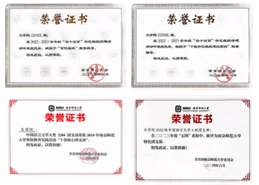 2204班注重培养班集体意识,在全民国家安全教育日、教师节四十周年等重要时间节点,举办主题教育活动,增强班级凝聚力与向心力。班级获评校“十佳班级”、校“十佳示范班级建设案例”、校“百优班级”等荣誉称号;团支部在2023年度“对标定级”中被评定为“五星级”,并获校“十佳暖心团支部”、校“特色团支部”等荣誉称号。