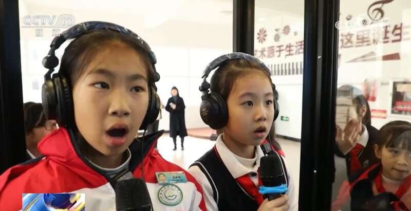 在浙江瑞安的一所小学,“唱吧”被搬进了教学楼,两名学生正陶醉地唱歌,没想到旁边听歌的孩子也跟着合唱,大家在音乐中放松心情。