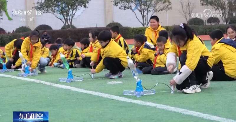 据介绍,该学校是航空航天特色学校,为了充分发挥这一优势,学校利用大课间做实验、搞发明,通过自己动手,培养孩子们对科学知识的兴趣。