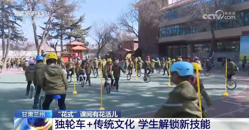 在甘肃兰州一所小学的课间,孩子们骑着独轮车排成长队,穿梭于障碍物之间。不仅如此,老师们还将独轮车与敦煌文化、舞龙舞狮等结合起来,让孩子们在运动中感受传统文化的魅力。