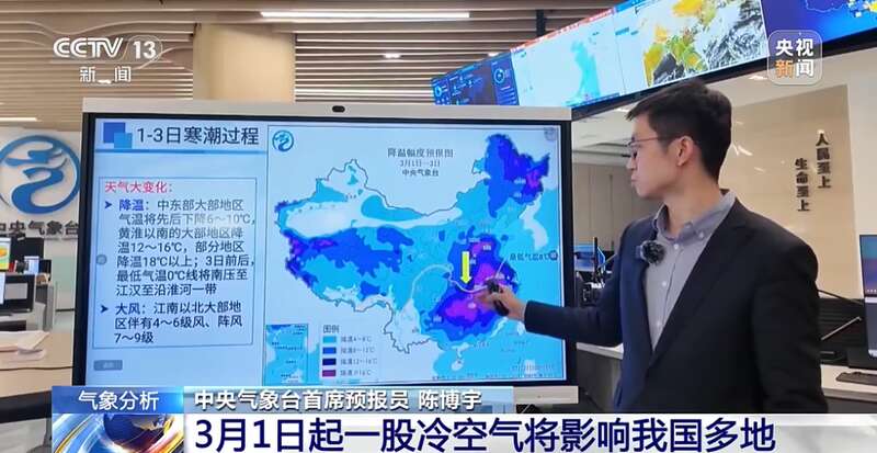 据央视新闻,这两天,我国大部地区气温回升。不过,气温将在3月1日起发生转折,一股较强冷空气将影响多地。