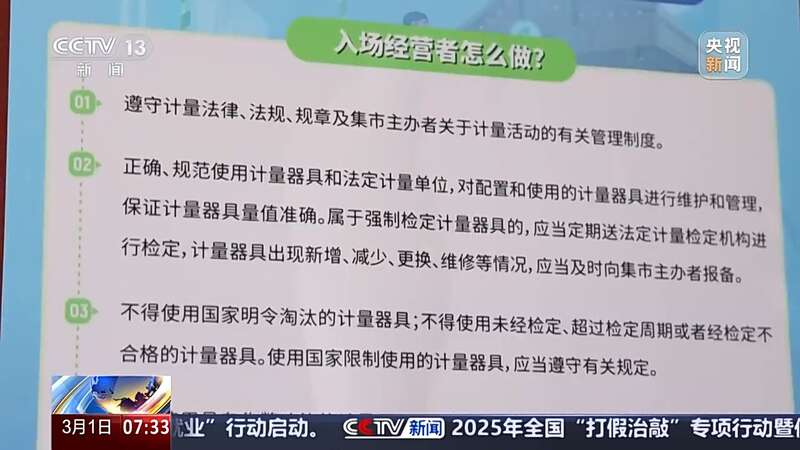 《集贸市场计量监督管理办法》从3月1日开始正式实施,将进一步压实集贸市场主办方主体责任,规范经营者行为。各地市场监管部门近期将连续开展严打“鬼秤”行动,让群众买得“秤”心如意,维护消费者合法权益。