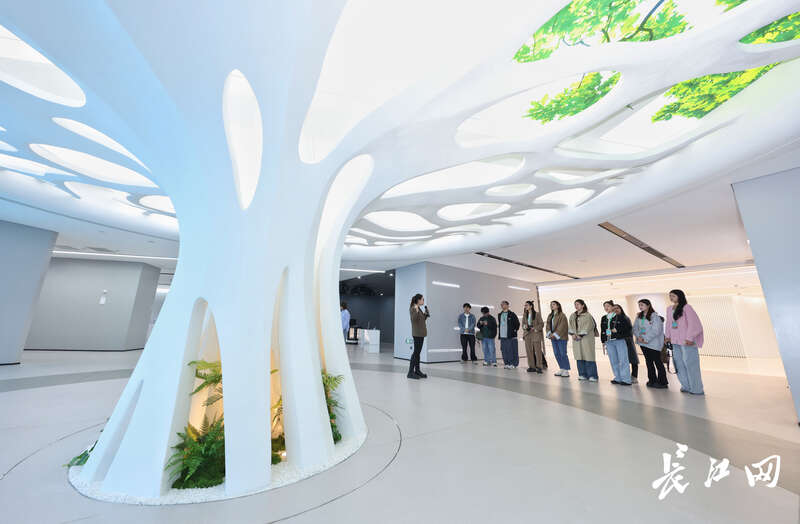 “在这棵树旁,习近平总书记强调,实现高水平科技自立自强、发展新质生产力,对科技创新和产业创新融合提出了更为迫切的需求,鼓励广大科技工作者和企业家要增强自信、志存高远、协同发力,在提升创新体系整体效能、建设现代化产业体系中不断建功立业。”进入武创院,在展厅中央屹立的一棵“科创之树”旁,武创院行政事务部经理宋霄彤向大家进行讲解。