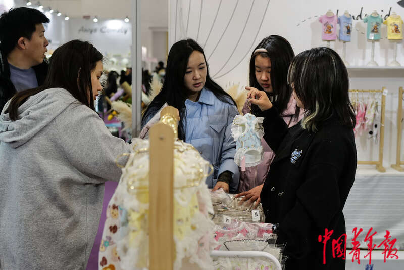 3月2日,北京中国国际展览中心(顺义馆),第12届北京国际宠物用品展,几名顾客在挑选宠物服饰。《2025年中国宠物行业白皮书》显示,2024年中国的城镇养宠家庭数量已经达到了7689万,猫狗的数量已经超过了1.2亿只;2024年中国城镇宠物的市场规模已经突破了3000亿人民币,预计2027年市场规模达到4042亿人民币。 中青报·中青网记者 赵迪/摄