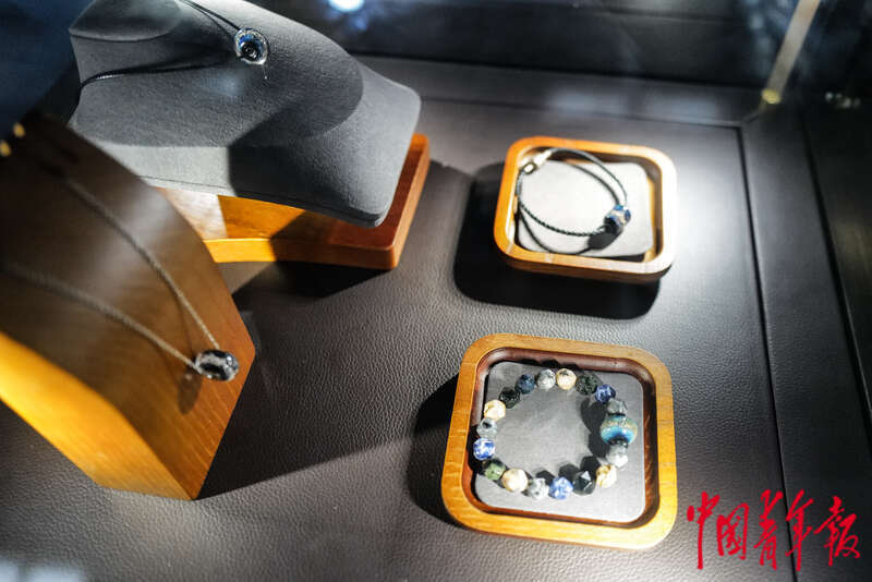 3月1日,北京中国国际展览中心(顺义馆),第12届北京国际宠物用品展,一家展商展示的宠物骨灰制成的首饰,用于主人怀念逝去的宠物。 中青报·中青网记者 赵迪/摄
