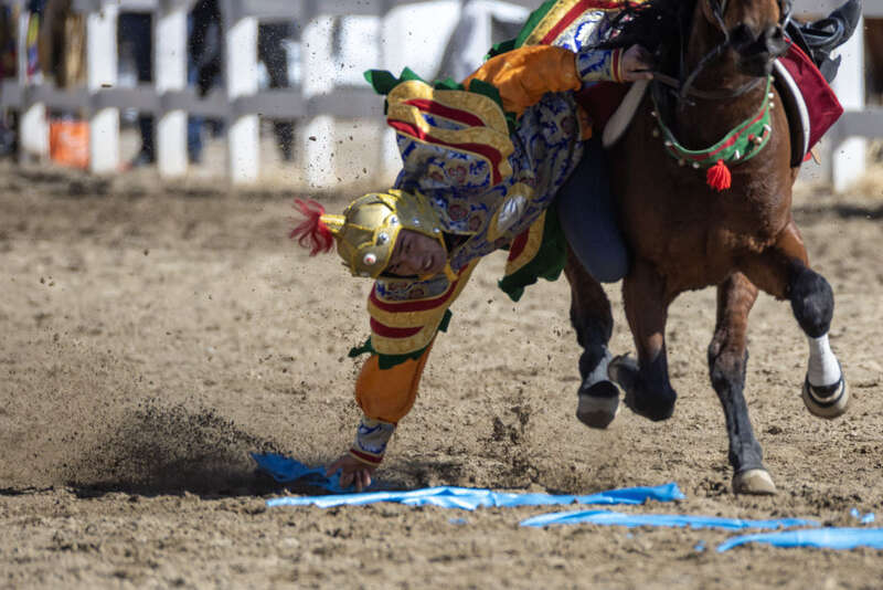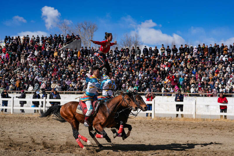 马上拾哈达、马上六人叠罗汉、马上舞蹈等