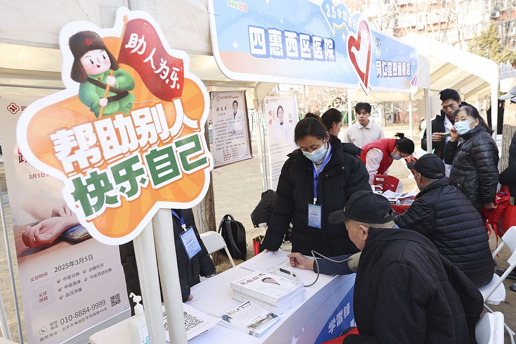 2025年3月4日,北京,主题为“学雷锋做志愿服务改革建新功暨双榆树伙伴计划发布会”活动在海淀区双榆树公园举行。来自“双榆树公园”周边的4个街道50多家企事业单位、社区社会组织参与活动。现场由30多家单位提供体验活动40余项,公益志愿服务资源超过200类,为地区志愿服务的参与者搭建了“极速充电站”。