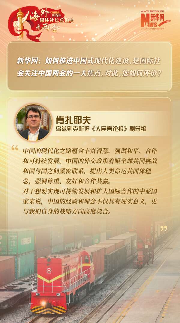 本期报道中,乌兹别克斯坦《人民言论报》副总编肯扎耶夫表示,中国的现代化之路蕴含丰富智慧,中国经济的高质量发展和开放政策更是对中亚等地区国家有重要影响。从中吉乌铁路到乌兹别克斯坦的环保公交车、风能和太阳能发电站,乌中在工业、能源、交通和高新技术领域的合作已取得显著成果。