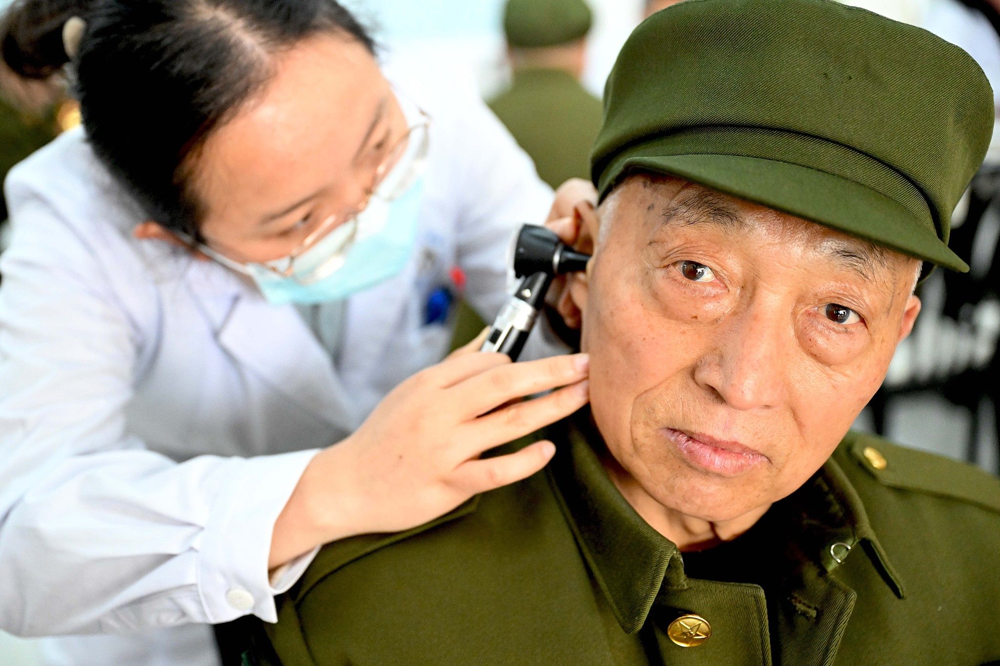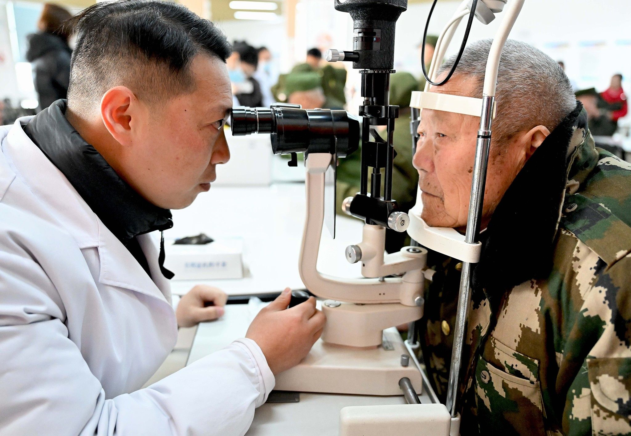 2025年3月5日,安徽亳州,在亳州市谯城区光荣院,志愿者为退役老军人进行爱心义诊。当天是学雷锋纪念日,亳州市退役军人事务局、亳州市拥军协会等单位联合开展志愿服务活动,组织20多名志愿者为生活在这里的退役老军人提供帮助,以实际行动践行雷锋精神。