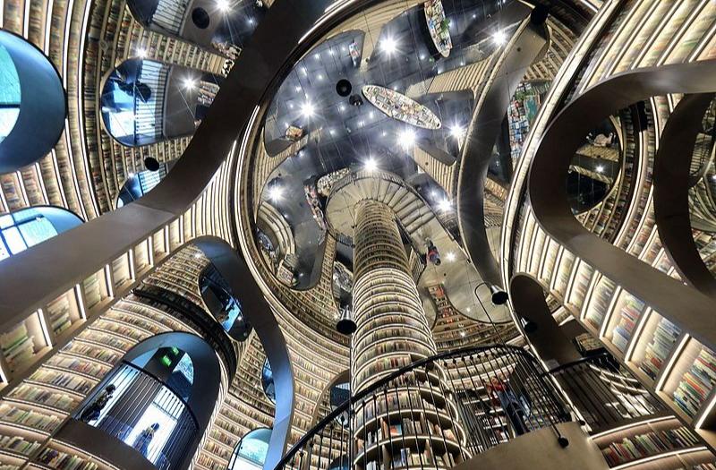四川都江堰:“最美书店”钟书阁层层环绕似科幻空间